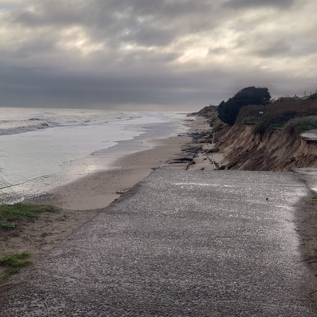 On a clear spring day in north Norfolk, I meet Simon Measures, chairman of Save Hemsby Coastline, a community group. We’re sitting at a busy beach café where lifeboat workers chat and dogs chafe at leads. The village, a popular tourist destination, faces the powerful North Sea. “We don’t measure how long we have in years,” he tells me as we walk up to The Marrams, the street where he lives, named for the grass that grows on the dunes. “We measure it in storms. We’ve maybe got three more storms.”